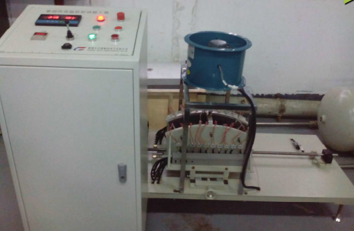 該工裝為制動(dòng)盤(pán)緊固件高溫防松試驗(yàn)工裝,可以安裝1/6的制動(dòng)盤(pán)兩片,使用加熱器將制動(dòng)盤(pán)片升溫到200℃(可調(diào),最大到300℃),再用風(fēng)冷方式將制動(dòng)盤(pán)片降溫到100℃(可調(diào),不低于環(huán)境溫度),然后重新加熱、將溫,重復(fù)升降溫的次數(shù)可以自由設(shè)定。工裝功率為10KW。